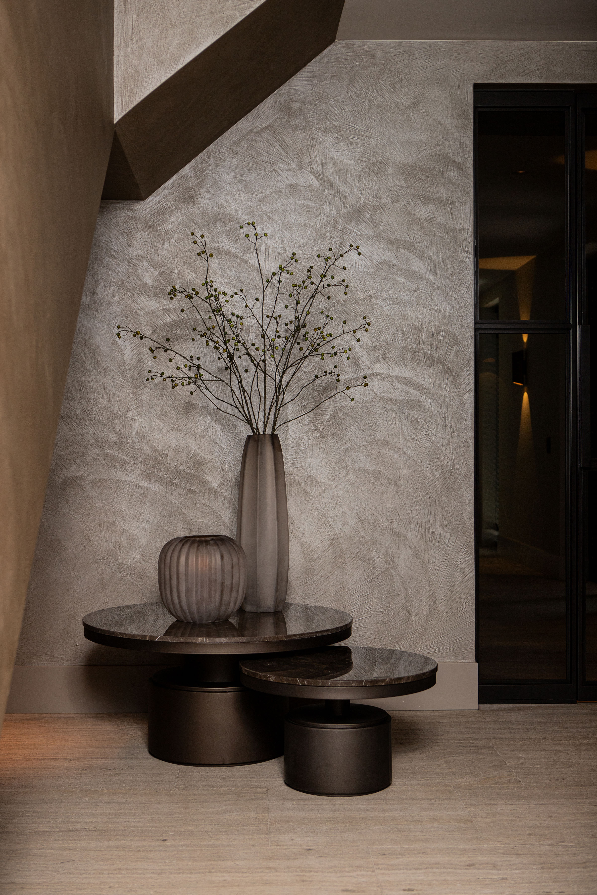 Solidna, cylindryczna podstawa z metalu w matowym wykończeniu doskonale kontrastuje z naturalnym kamieniem, podkreślając nowoczesny charakter mebla. Stabilna konstrukcja gwarantuje trwałość i funkcjonalność, a minimalistyczna forma sprawia, że stolik świetnie wpisze się zarówno w eleganckie wnętrza klasyczne, jak i w nowoczesne aranżacje.